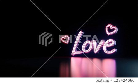 Glowing Neon Love Sign with Pink Hearts on Dark Background