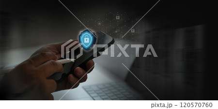 data security businessman using online computer password privacy data security on display at office