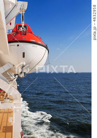 Safety lifeboat on deck of passenger ship