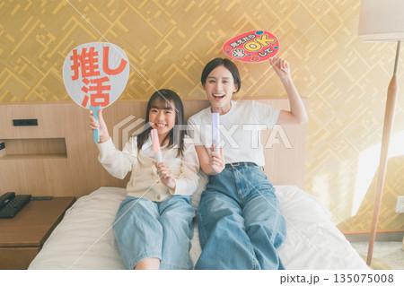 応援うちわを持ってコンサートを見に来たカップル 推し活