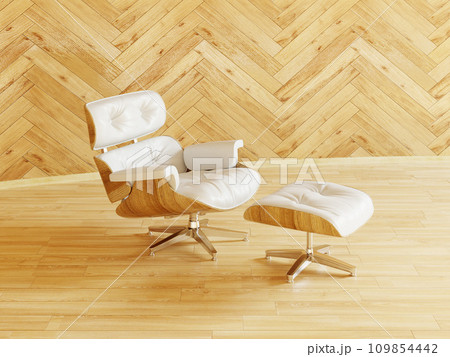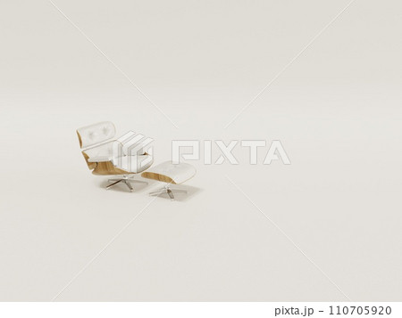 【3DCG】白い革張りのイームズラウンジチェアー&オットマン