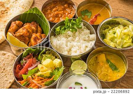インドの典型的なカレー定食 Curry gourmet of meals India