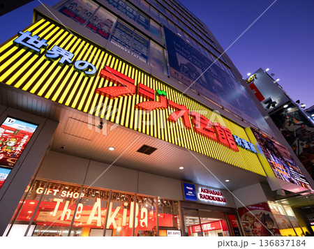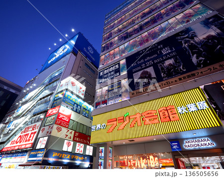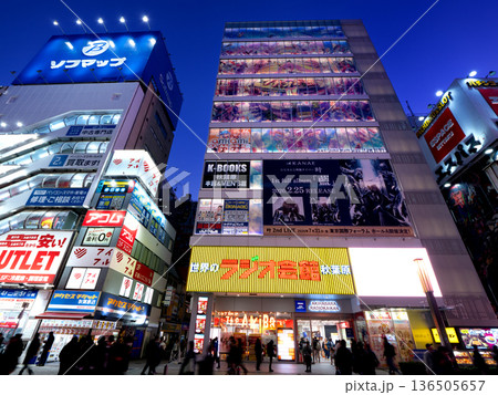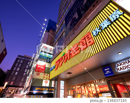 夜の秋葉原ラジオ会館と電気街 東京都