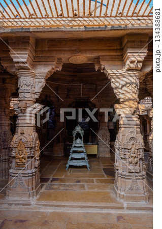 India, Interior of a Jain temple, located within the Jaisalmer Fort complex.