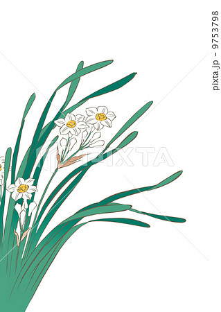 和風イメージ 早春の花 さわやかな日本画の水仙