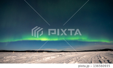 フィンランドの大地に降り注ぐオーロラ