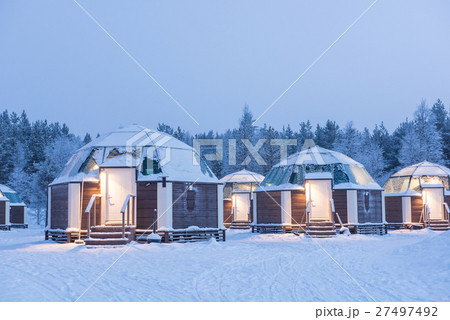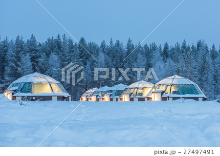 ガラスイグルー内から見た雪景色のガラスイグルー