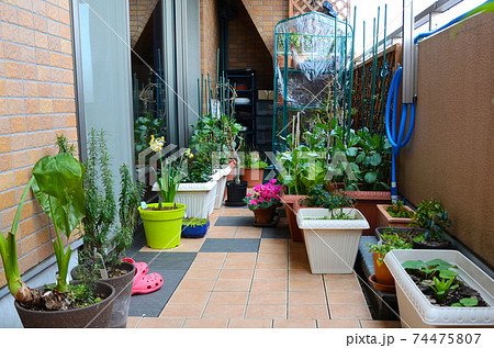 青空の下、ルーフバルコニーで家庭菜園 プランター菜園 いろいろな野菜を育てる