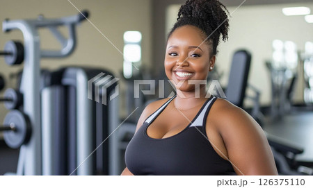 Plus size woman lifting dumbbells and training indoors at the gym, showcasing strength and determination. Generated image