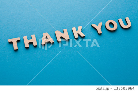 Phrase Thank You on blue background. Politeness, thanks, gratitude concept
