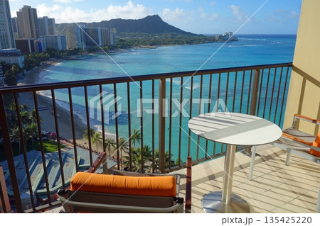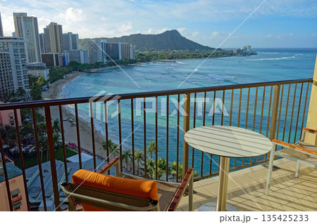 ハワイの絶景《ホテルから眺める朝のワイキキビーチ》