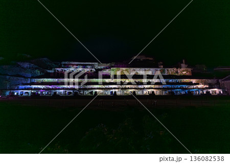 新潟県佐渡市相川北沢町 佐渡金山の選鉱所の遺構である北沢浮遊選鉱場のライトアップ夜景
