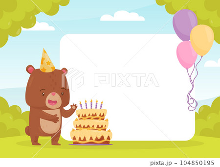 Happy Birthday Empty Card with Cute Bear Animal Vector Template