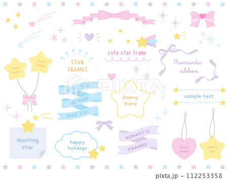 手描き風のかわいいドリーミーなフレームセット。星、リボン、ハート