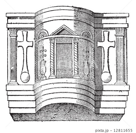 Pulpit of the Cathedral of Ravenna, vintage engraving.