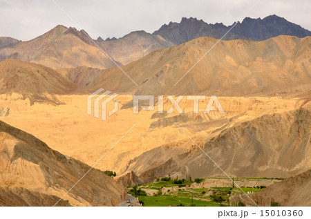 ジャンムー・カシミール州ラダック地方ラマユルから眺めるインダス川流域とザンスカール山脈の眺望