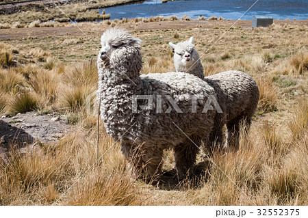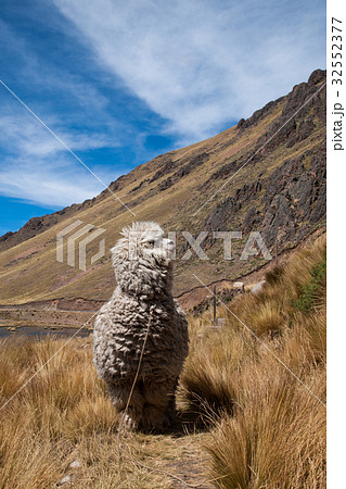 ペルーのララヤ峠のアルパカ