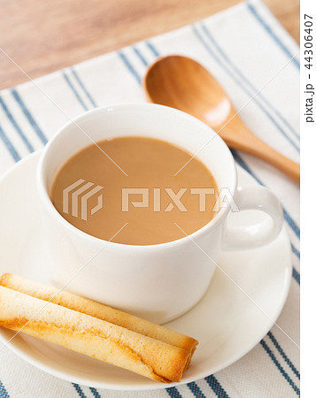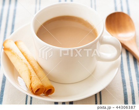 マグカップのたっぷりミルクティとラングドシャクッキー