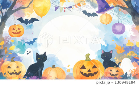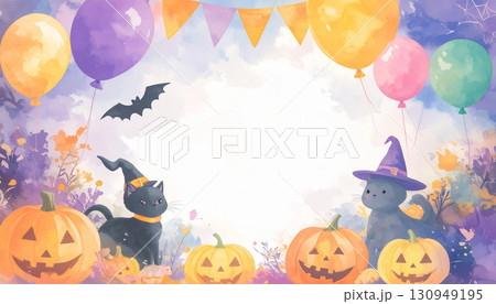 猫とジャック・オ・ランタンのハロウィンパーティーのフレーム素材