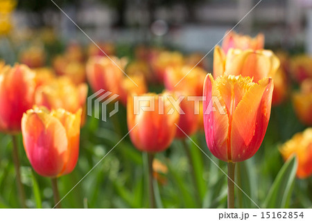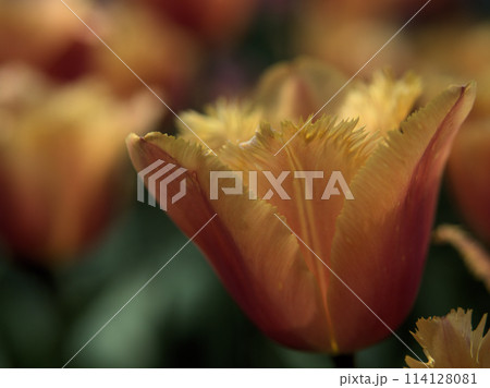 4月に咲いたオレンジ色のチューリップの花「ランバダ」