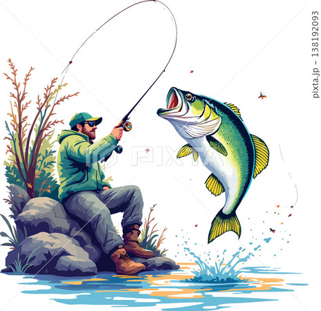 Fisherman Bass Fishing Catching Largemouth Jumping