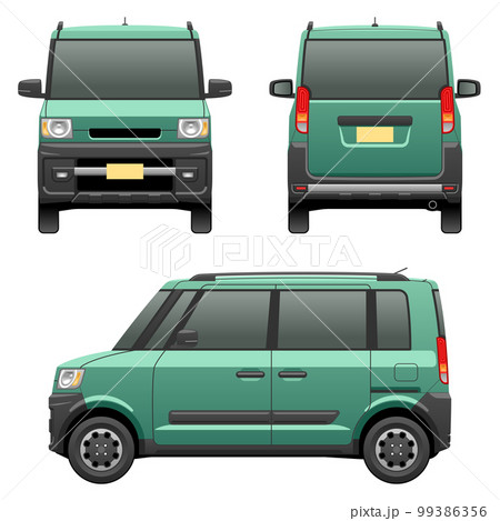 3方向から見た車のイラスト(軽スーパーハイトワゴン)