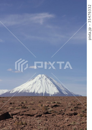 雪晴れの南米チリ北部アンデス山脈の火山リカンカブール