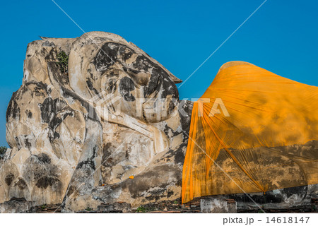 giant reclining buddha statue Wat Lokayasutharam Ayutthaya bangk