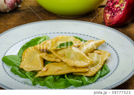 Homemade ravioli stuffed with spinach and ricotta