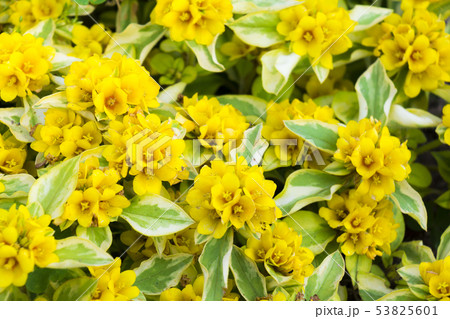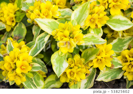 夏にさく黄色い小花、リシマキア、庭に咲く花、背景素材