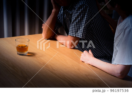 家でうなだれるミドル男性と彼を慰めるミドル女性