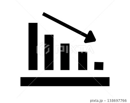 下降する3Dの矢印と棒グラフを虫メガネで見る、業績悪化の検証