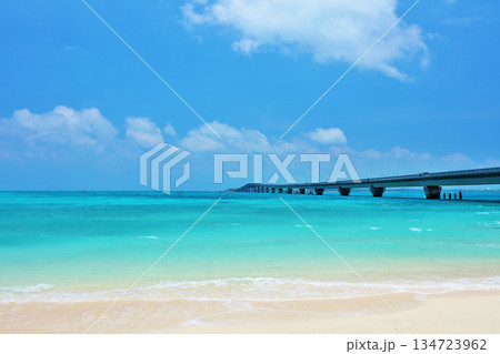 沖縄 夏の青空と池間島の海