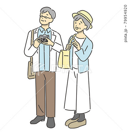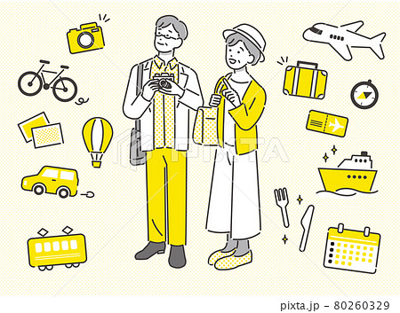 旅行をするシニア夫婦のベクターイラスト素材/アイコン/夫婦/旅行