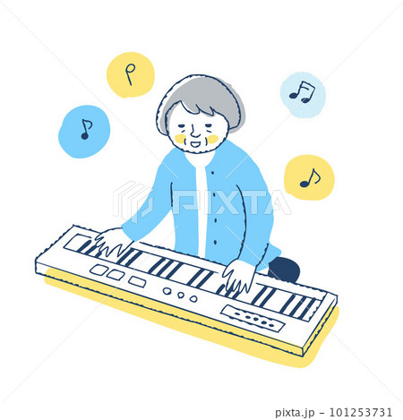 電子ピアノを演奏しているシニア女性