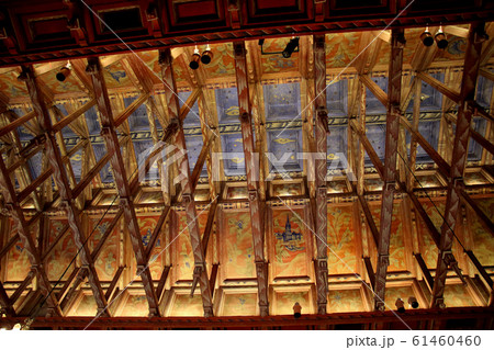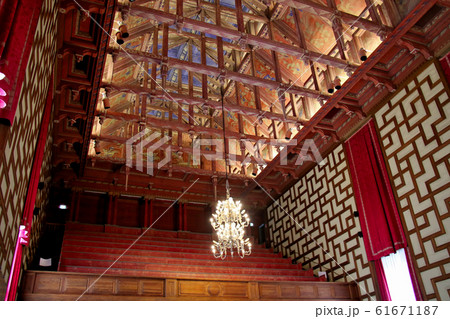 スウェーデンの首都、ストックホルムの市庁舎 議場の煌びやかな吹き抜け天井装飾