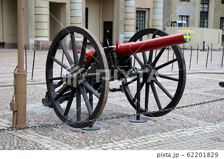 スウェーデン、ストックホルム市 ガムラ・スタンにある王宮に置かれた大砲、野戦砲