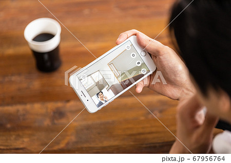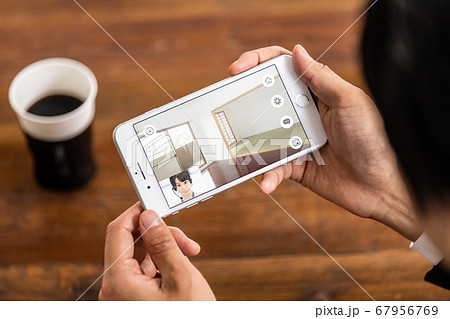 スマホで不動産物件を内見している人(オンライン内見イメージ)