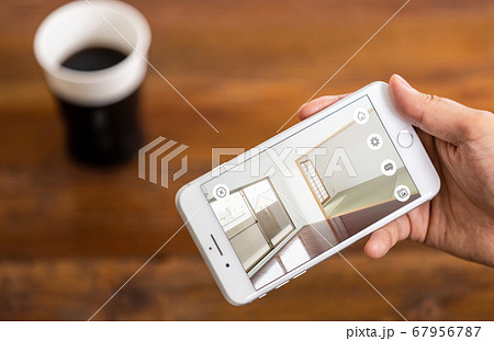 スマホで不動産物件を内見している人の手(オンライン内見イメージ)