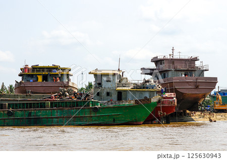 Old ship dismantling site in the Mekong River Delta, Vietnam