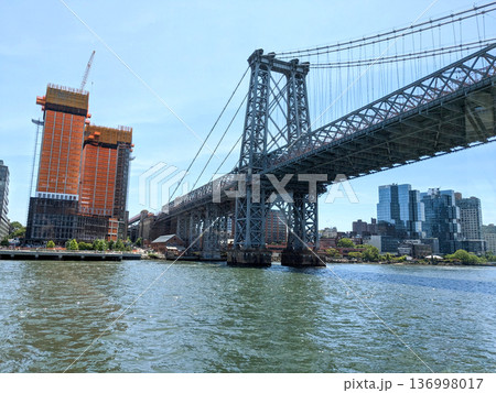 マンハッタンブリッジとイーストリバーの都市風景 ニューヨーク観光やビジネスPRに