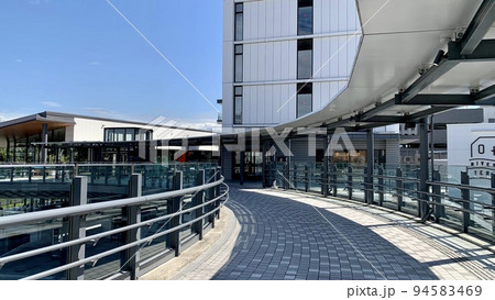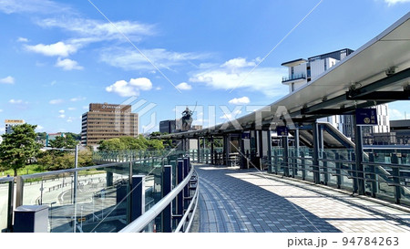 オトリバーサイドテラスのペデストリアンデッキと青空[名古屋鉄道東岡崎駅/愛知県岡崎市]
