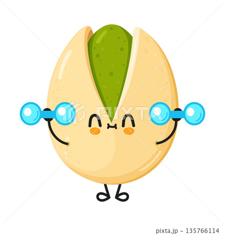 Pistachio character working out with dumbbells