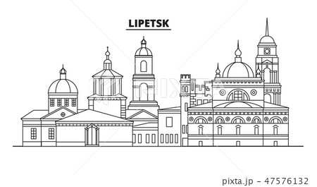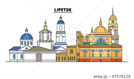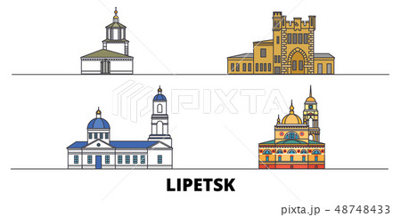 Russia, Lipetsk flat landmarks vector illustration. Russia, Lipetsk line city with famous travel