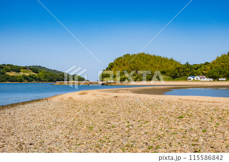 岡山県瀬戸内市牛窓にある黒島ヴィーナスロードで繋がる黒島と中ノ小島と端ノ小島