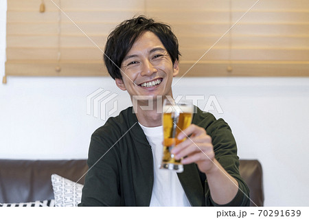 ビアグラスを持った男性 オンライン飲み会イメージ