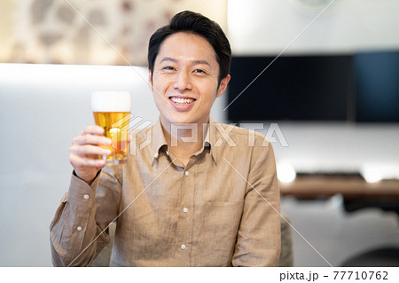 ビアグラスを持った男性 オンライン飲み会イメージ