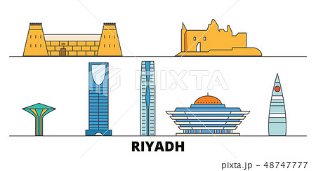 Saudi Arabia, Riyadh flat landmarks vector illustration. Saudi Arabia, Riyadh line city with famous