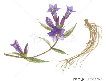 竜胆(リュウタン)漢方薬の生薬水彩イラスト
