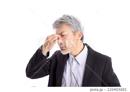 眼精疲労 ネガティブ グレイヘアの男性